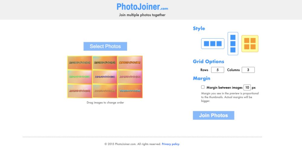 9分割画像を作るには、PhotoJoinerというサイトを利用します。