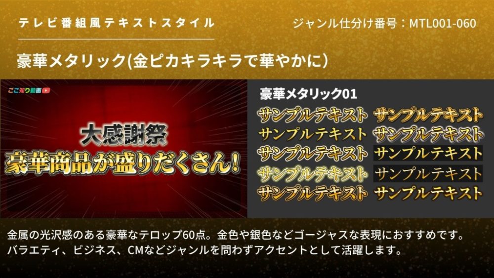 テレビやゲームでよく見かける金文字、ゴールドテロップを使えば動画がもっと豪華になること間違いなし!