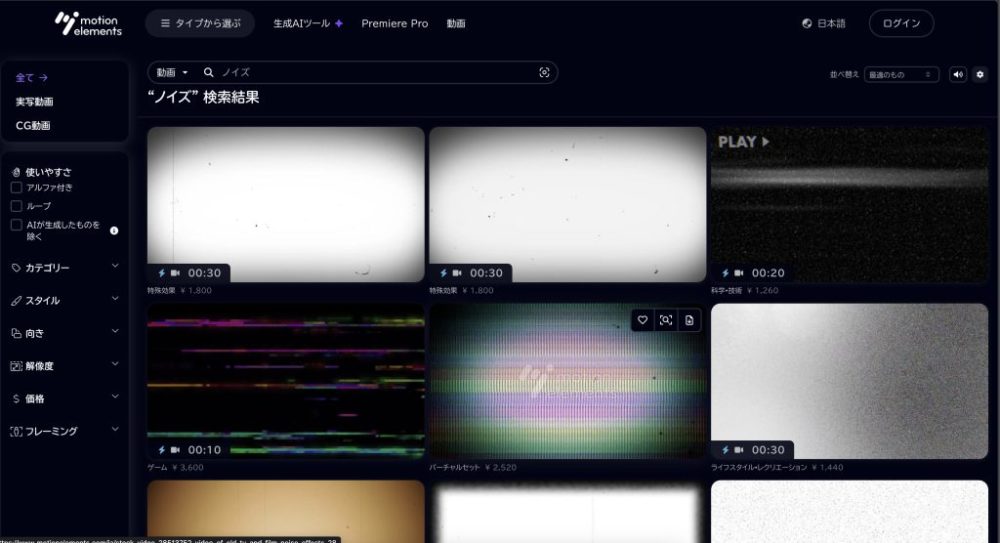 プレミアプロのレトロ風のノイズ素材ならモーションエレメンツがおすすめ