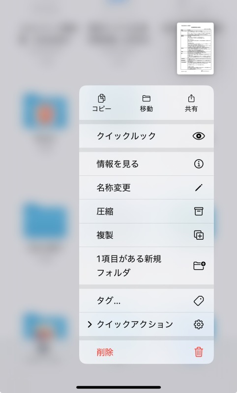 保存した m4a ファイルを「ファイル」アプリでタップ。 - 共有メニューを開く