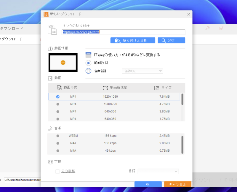 - Web動画ダウンロード: 最初に紹介した通りURLを貼り付けるだけで、YouTubeをはじめとした動画サイトからの保存がしっかり行えます。画質選択も分かりやすいです。